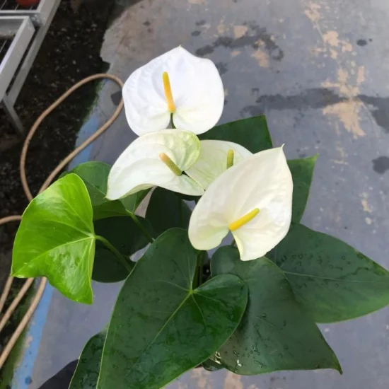 - Pure White Blooms: The Samora White Anthurium is distinguished by its striking white spathes, which gracefully encircle a contrasting pink spadix. These elegant blooms exude a timeless beauty, adding a touch of refinement to any setting.