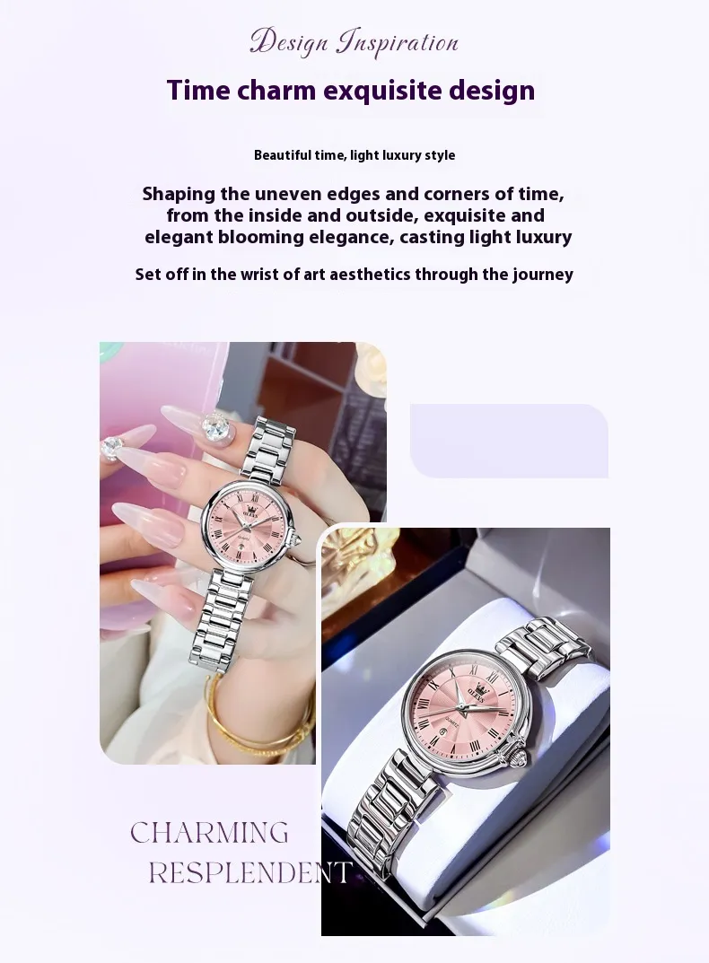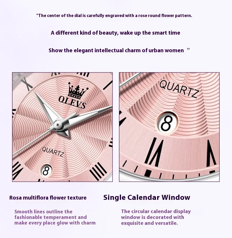 The convenient date display feature keeps you on top of your schedule at a glance, adding a practical touch to its elegant design.