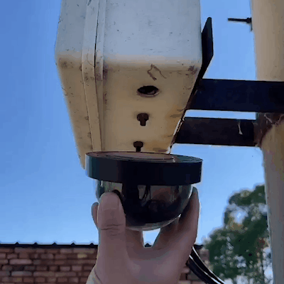 close distance during the day; The red LED light flashing 7/24 after the battery is installed. It's very eye-catching at night, making it