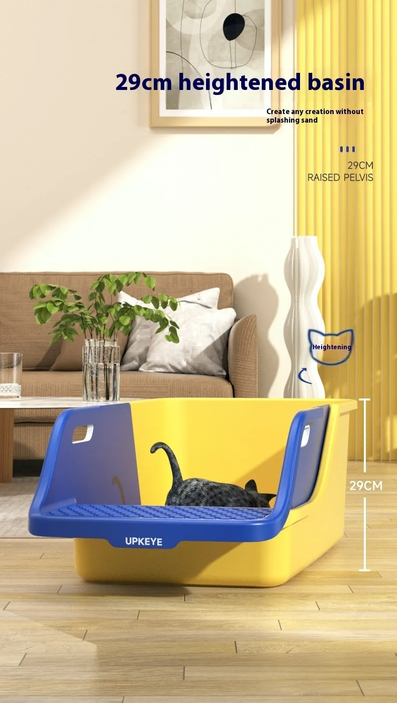 The integrated design helps keep odors contained, ensuring that your home stays fresh. The high splash-proof sides and ventilated structure help to maintain a clean and comfortable environment for both your cat and your household.