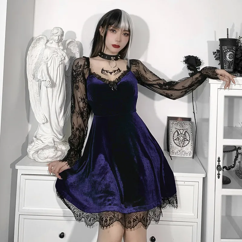 Crafted from high-quality, breathable fabric, this dress ensures comfort while maintaining a luxurious appearance. The flared sleeves offer both style and freedom of movement, making it ideal for dancing or socializing. The lace stitching elevates the dress with an intricate, detailed design that adds a layer of refinement to the overall look. Whether paired with heels for a formal event or worn with boots for a more casual, yet stylish outfit, this dress offers versatility and timeless appeal.