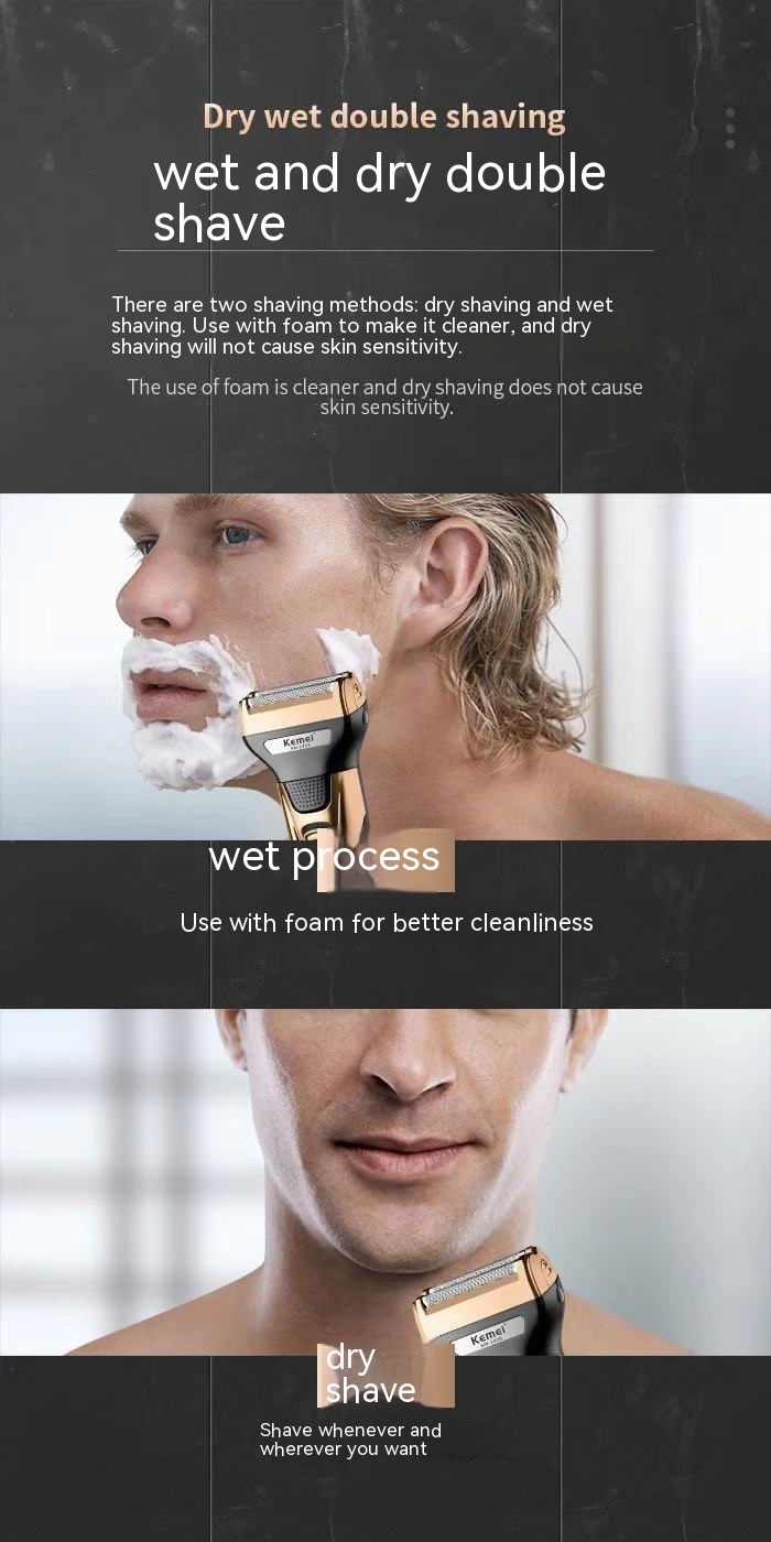 - Waterproof and Easy to Clean: The fully waterproof design allows for both wet and dry use, giving you the flexibility to shave with or without foam as preferred. Cleaning is straightforward—simply rinse the cutter head under the tap to keep it looking and performing its best.