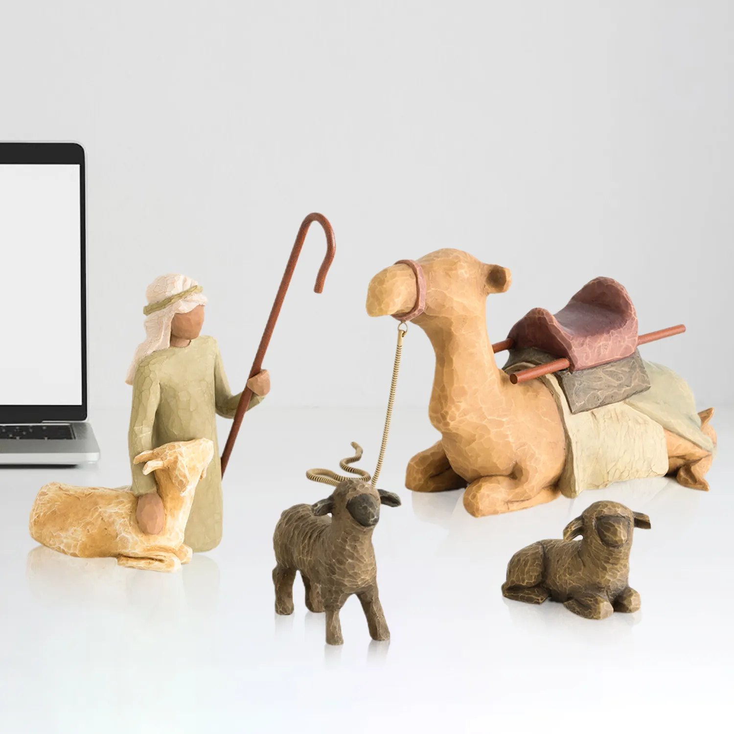 Each figurine is carefully painted with warm, natural colors that highlight the shepherd’s robes, staff, and expressions.