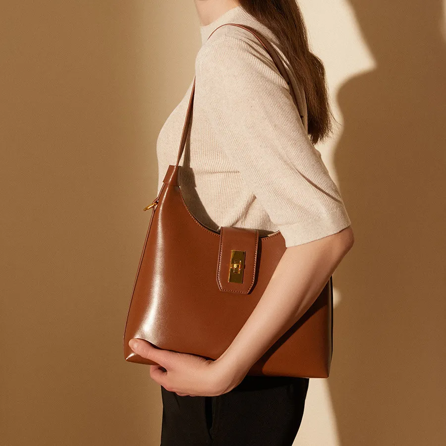 Shoulder Bag Genuine Leather Retro French Stick Female
