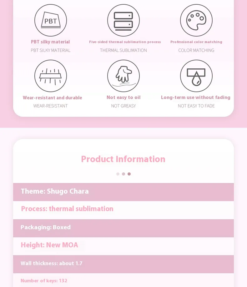 Shugo Chara Key Cap MOA Highly Personalized Theme Five-sided Sublimation Customized PBT Mechanical Keyboard Keycaps Key Cap