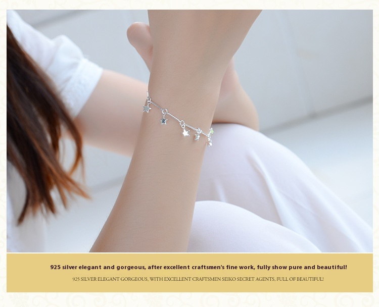 - Material: Crafted from high-quality materials, the bracelet boasts a luxurious silver-plated finish that ensures durability and a long-lasting shine. The premium plating provides a sophisticated look that complements the delicate star charms perfectly.