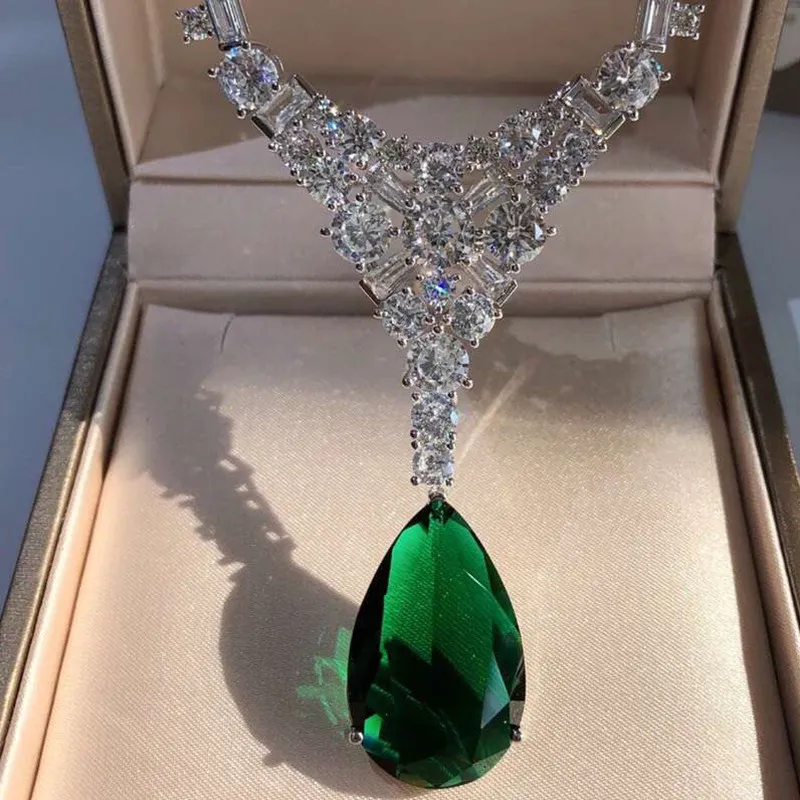 The pendant is set in silver with gold plating, which adds an elegant touch of warmth and luxury. The gold-plated finish enhances the brilliance of the Moissanite and emerald, creating a necklace that looks and feels like a high-end piece of jewelry. The combination of silver and gold also makes the necklace versatile, easily complementing both silver and gold-tone accessories.