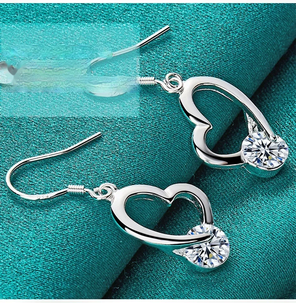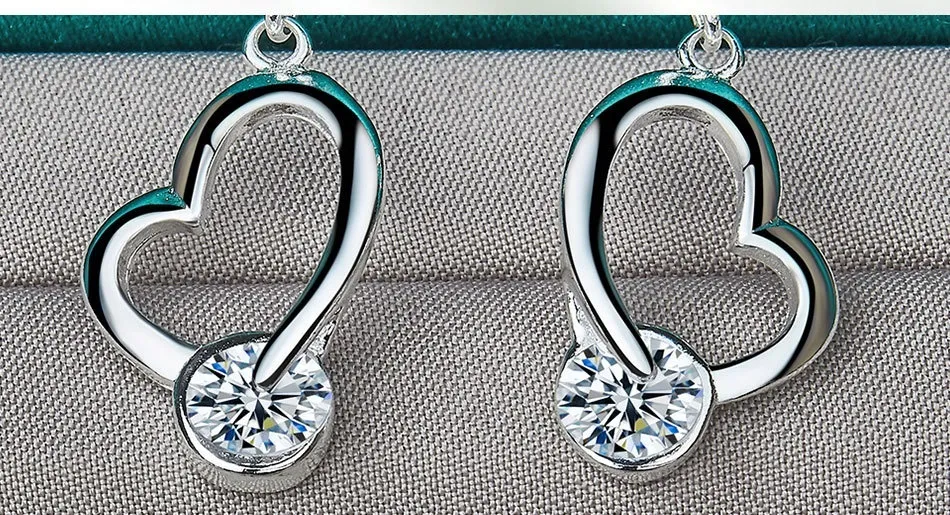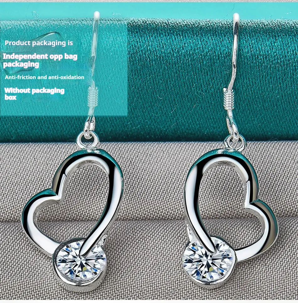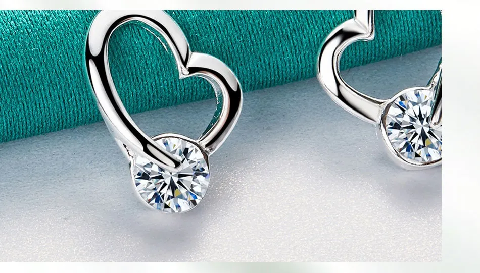 Silver Jewelry Loving Heart Zircon Female Earrings