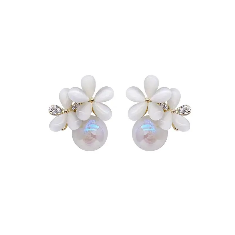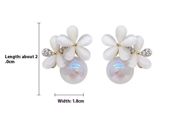 Silver Needle Retro Cymophanite Flower Stud Earrings Mermaid