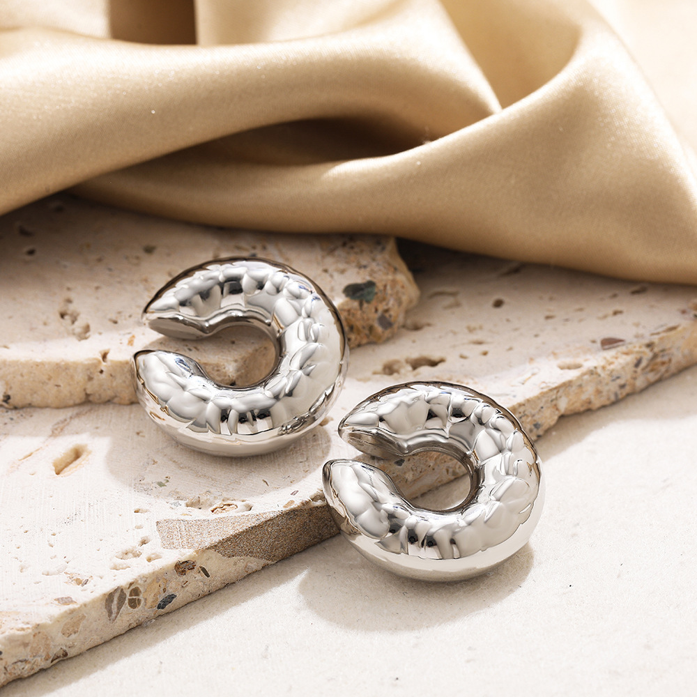 The C-shaped design adds a unique and bold aesthetic to these earrings, making them a standout piece in any jewelry collection.