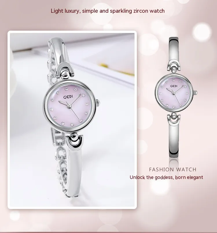 The Simple Design Small Exquisite Round Dial Bangle Watch is a must-have accessory for anyone seeking a blend of elegance and simplicity. Its refined design and precise quartz movement make it a versatile addition to any jewelry collection, offering timeless style for every occasion.s