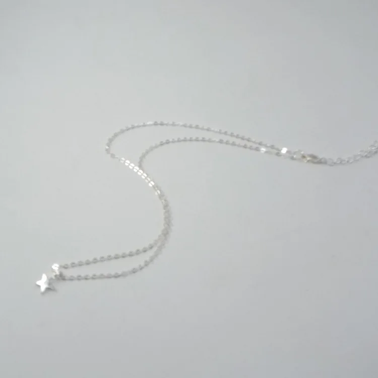 The necklace features a thin chain adorned with star-shaped pendants in a mix of gold and silver tones. This subtle yet striking design adds