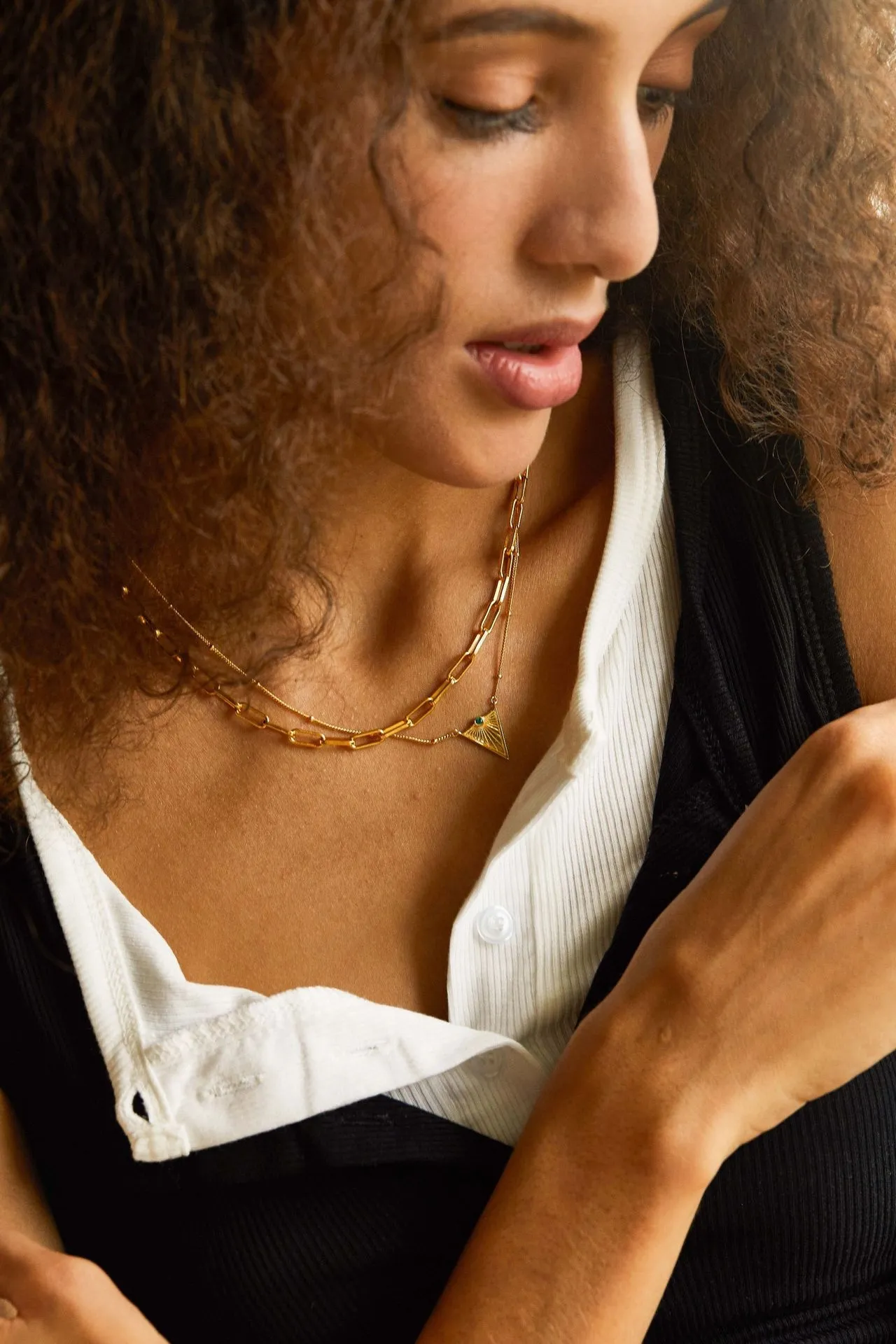The necklace is electroplated with 18K gold, offering the brilliance and luster of solid gold without the high price tag. This electroplating process ensures a durable, long-lasting finish that retains its shine over time. The rich, warm golden tone adds a luxurious touch to the necklace, making it the perfect accessory for both casual and formal occasions.