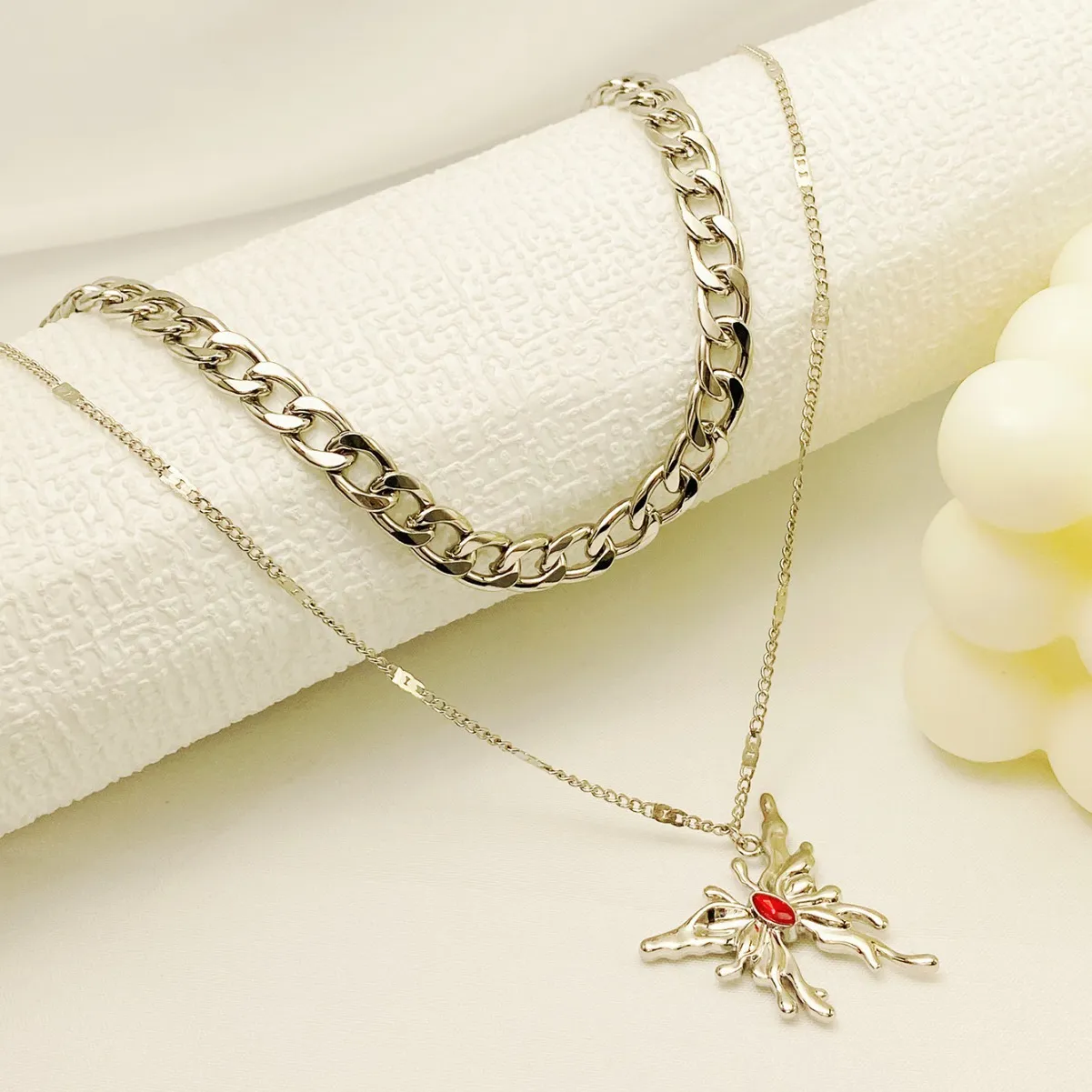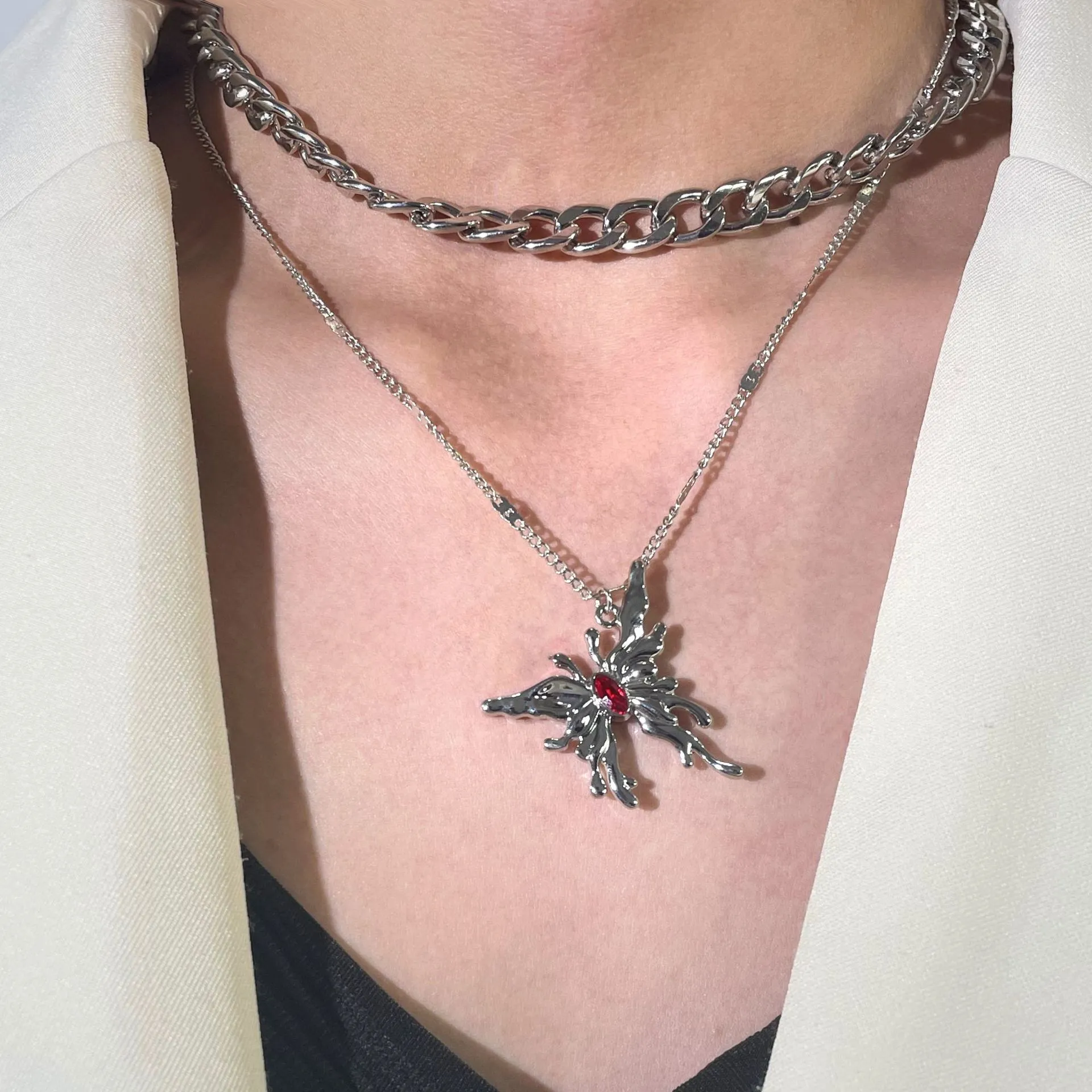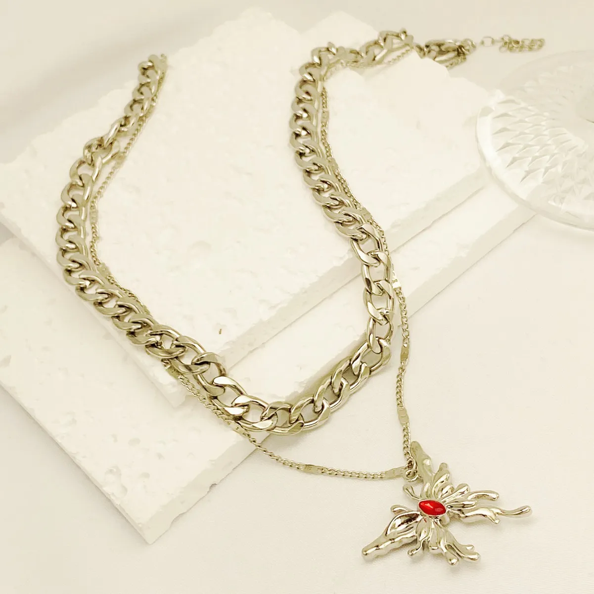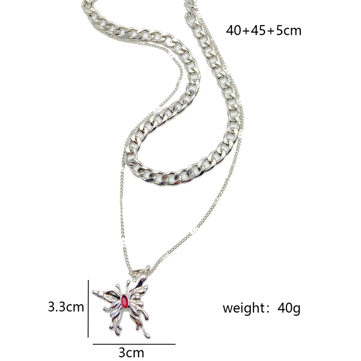 Simple Red Gemstone Butterfly Pendant Multi-layer Necklace