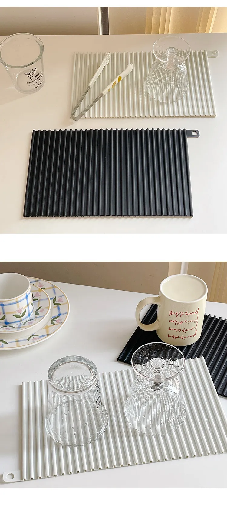 Simple Silicone Draining Pad Heat Insulation Easy Cleaning Non-slip Fixed Cushion