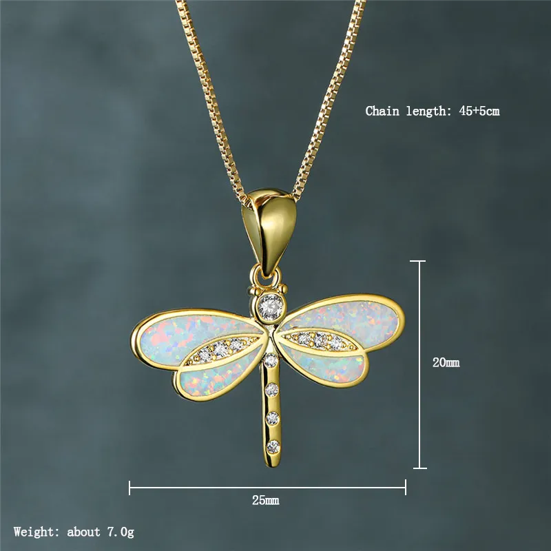 Simulated Opal Dragonfly Ladies' Pendant Necklace