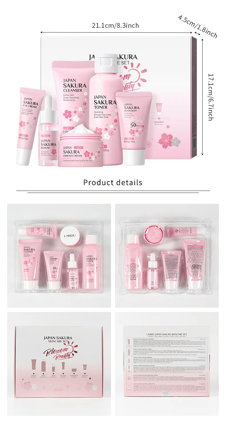 the secret to timeless beauty with our Japan Sakura Skin Care Set. Inspired by the delicate and enchanting Sakura blossoms, this luxurious