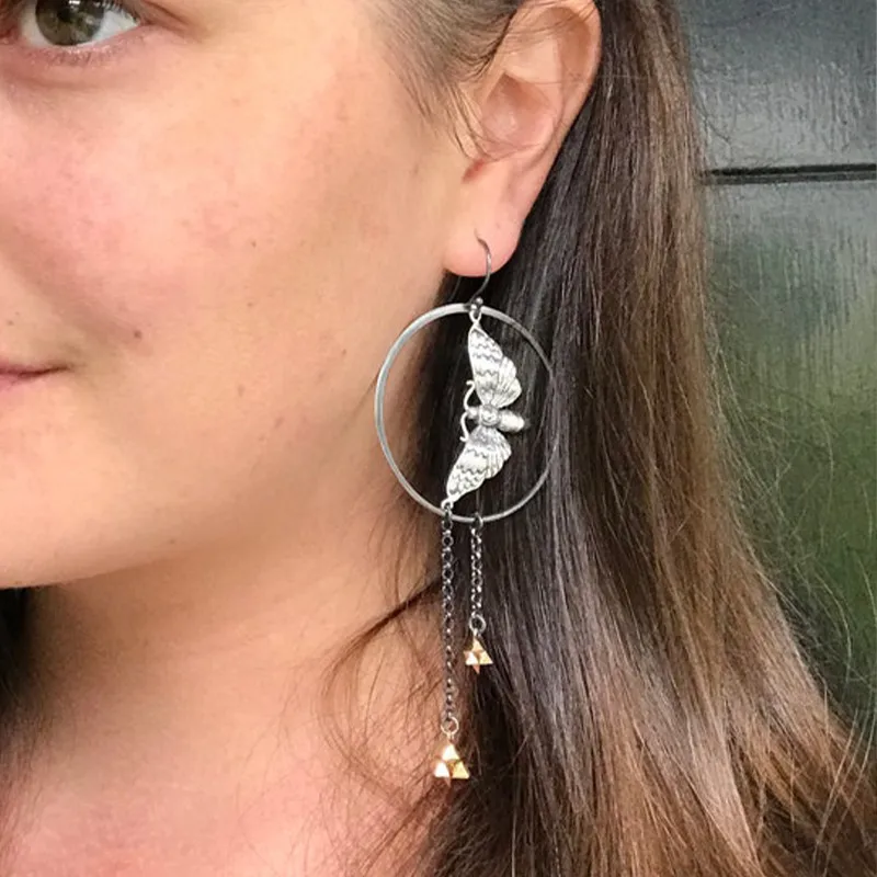 Skull Moth Pendant Earrings For Women