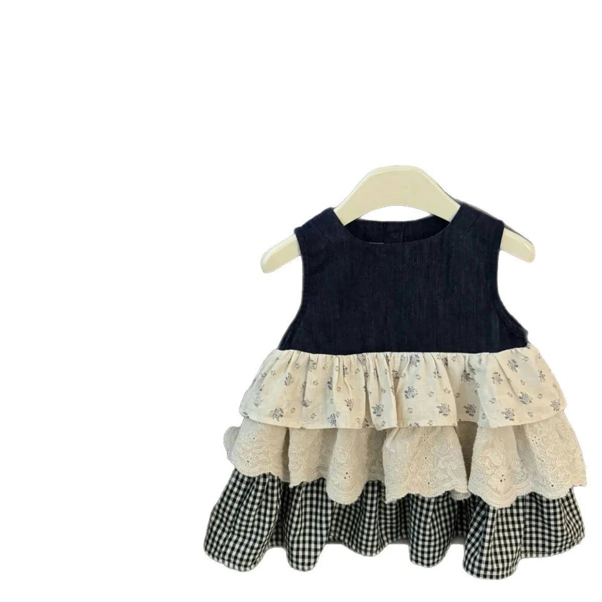 Sleeveless Vest Plaid Stitching Denim Skirt Bandage Dress Cake Dress – Fashion Meets Comfort