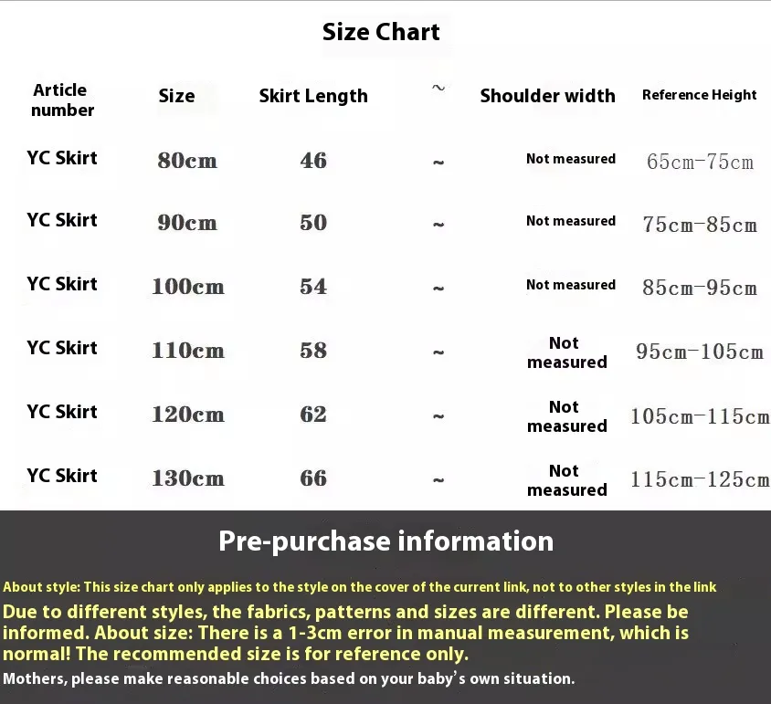 two sizes. Please allow 2-3cm differences due to manual measurement. 2. Please check the size chart carefully before you buy the item, if