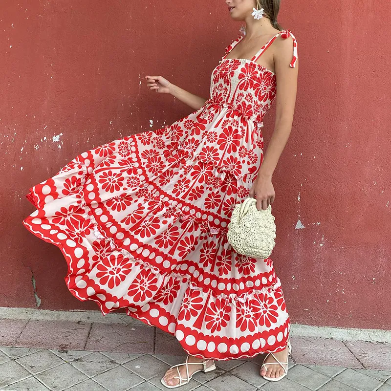 Sling Contrast Color Waist Slimming Dress Women