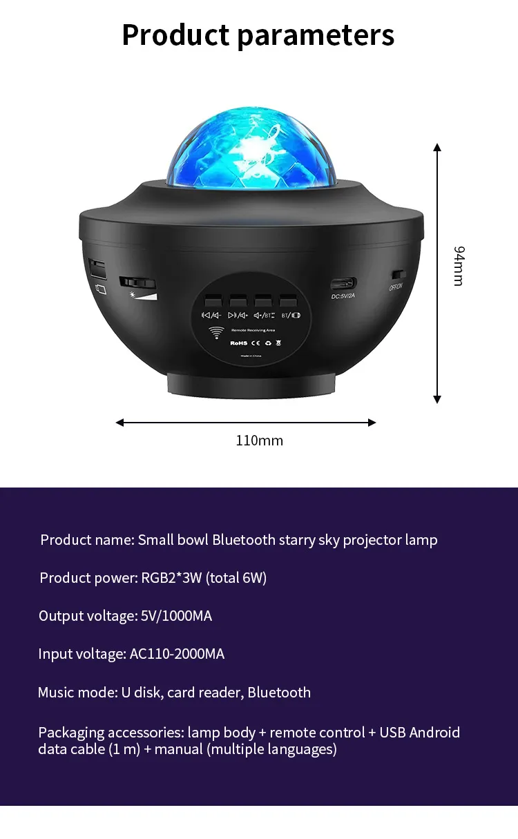 Small Bowl Starry Sky Projection Lamp USB Bluetooth Music Rotating Water Ripple Laser Atmosphere