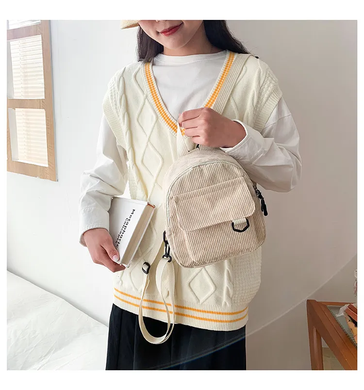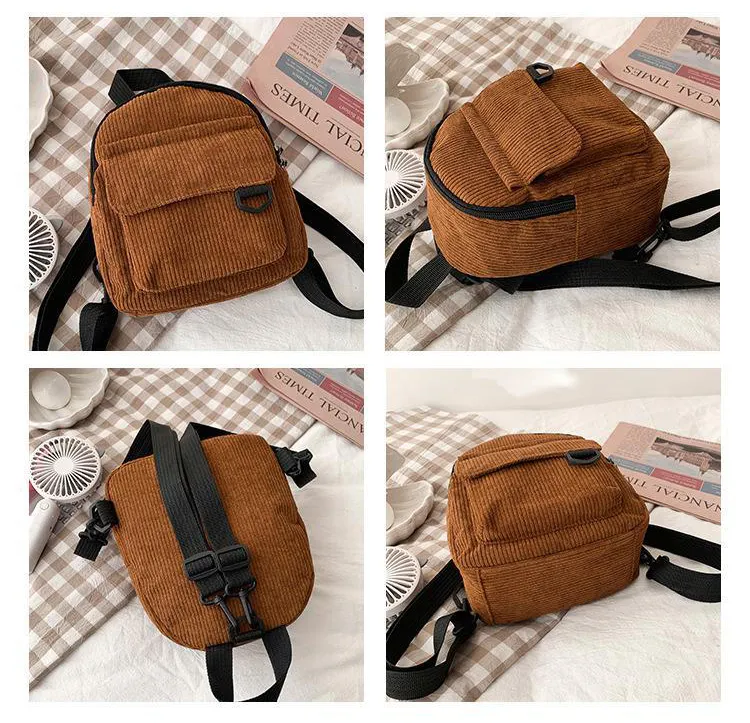 Small Corduroy Backpack Fashion Primary And Secondary Campus Bag Girls Schoolbags