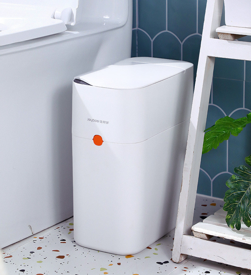 - This smart garbage bin with lid is a must in any kitchen, especially those messy broken eggs dripping all over your hands, spilled items in refrigerator, or just the general kitchen disasters that require two hands to transport the soaked various items to the nearest recepticle.Â