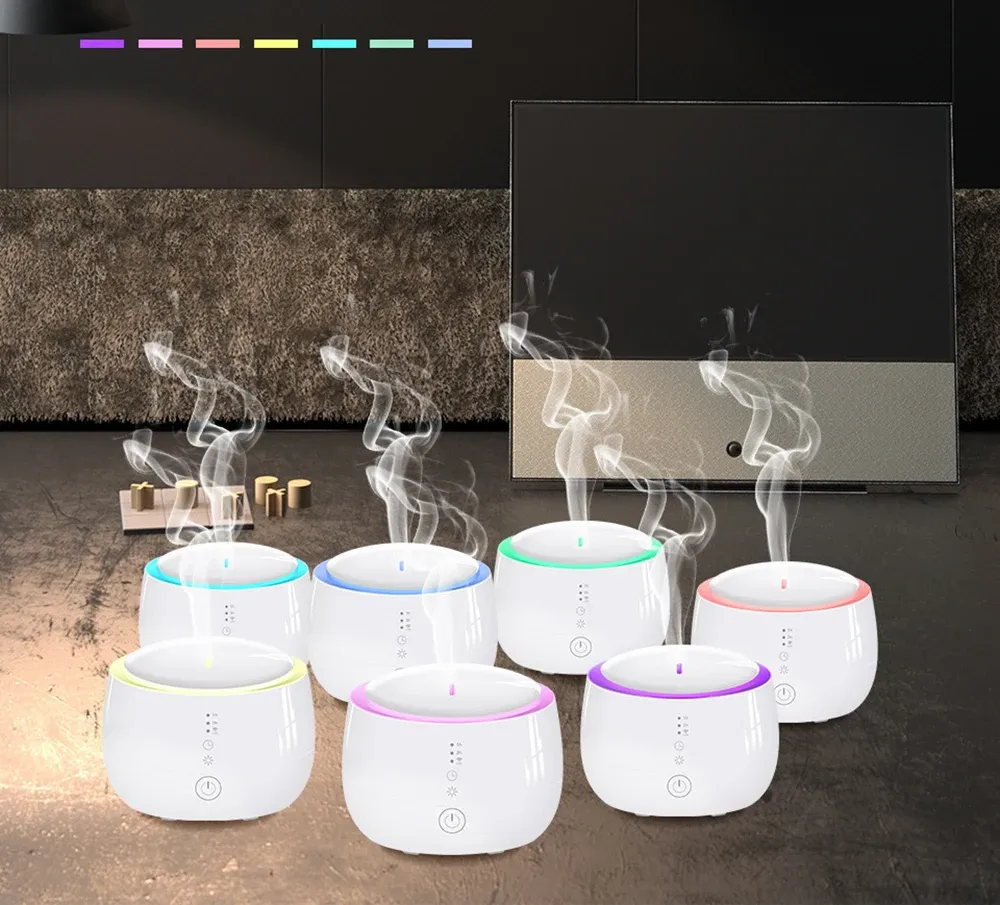 The main functions of the product are air purifier, colorful lights with adjustable color, humidifier, aroma diffuser, touch adjustment