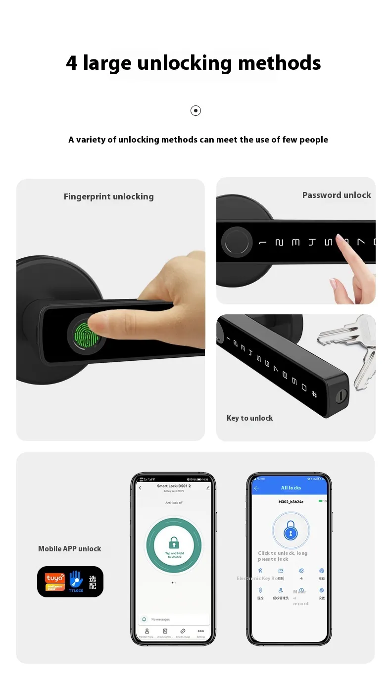 - Flexible Access Methods: Multiple ways to unlock your door for ultimate flexibility.