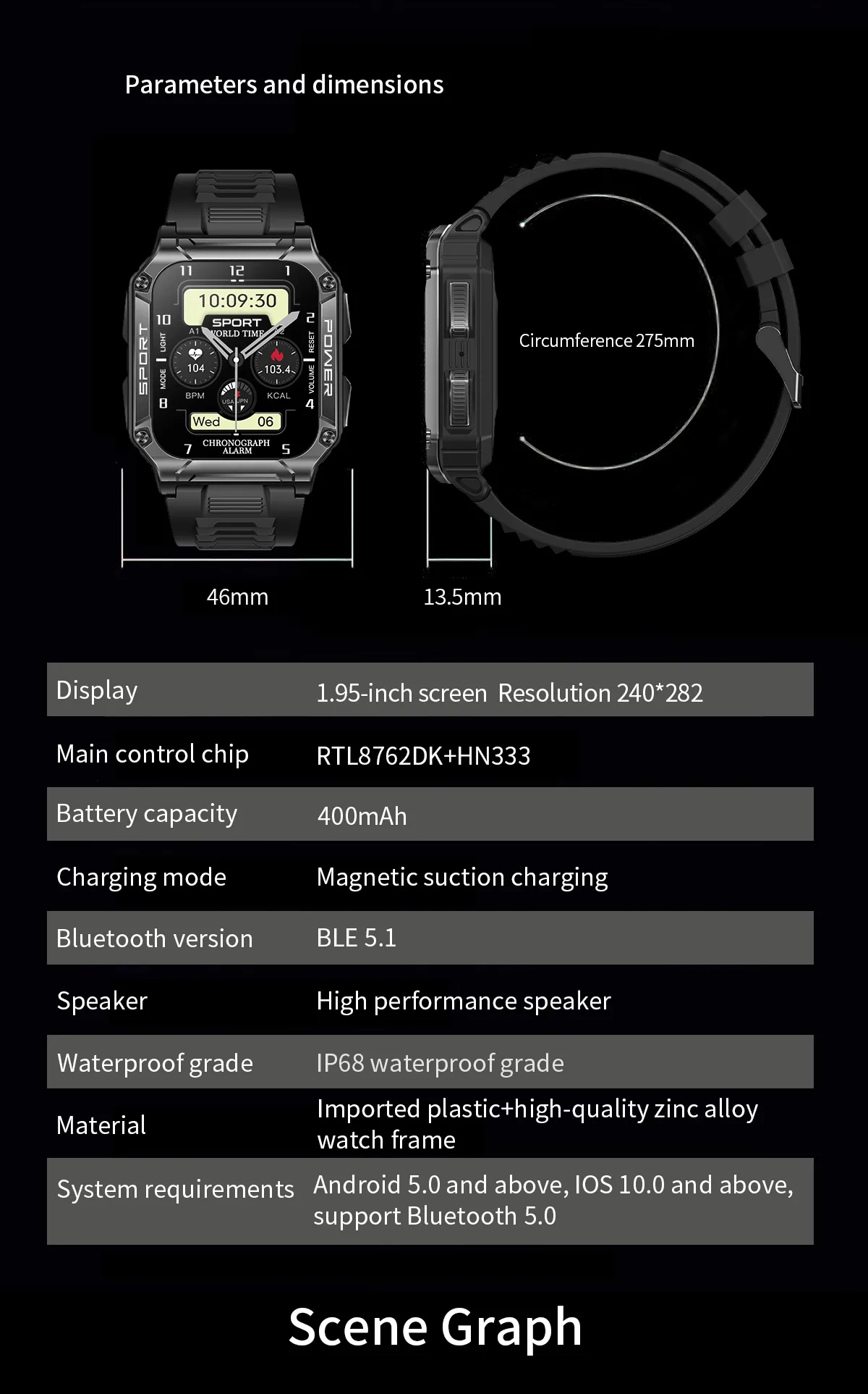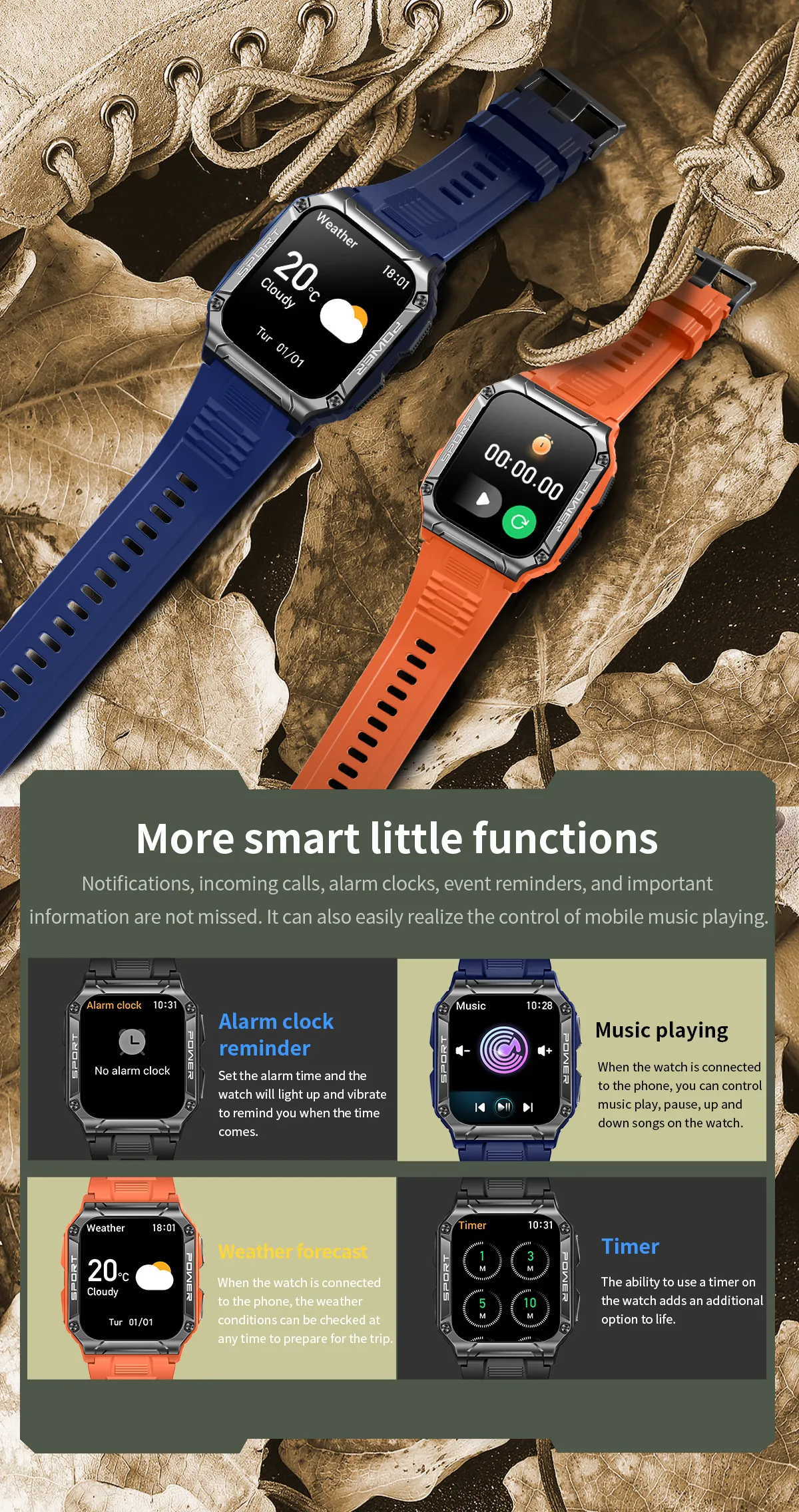 With its waterproof design, the Smartwatch 1.95" Screen Bluetooth Talk Compass is ideal for anyone who needs a rugged and reliable smartwatch that can stand up to the demands of both daily life and outdoor adventures.
