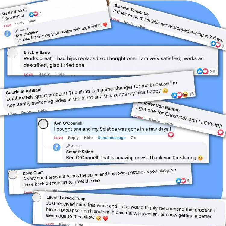 By using the SmoothSpine Pillow, many patients report experiencing way less joint and muscle pain, mainly in the hips, lower back and legs.