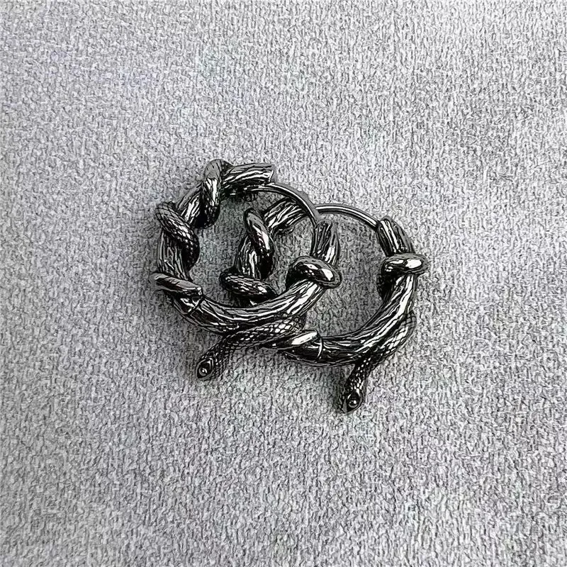 - Large Black Earrings Features tangled snakes