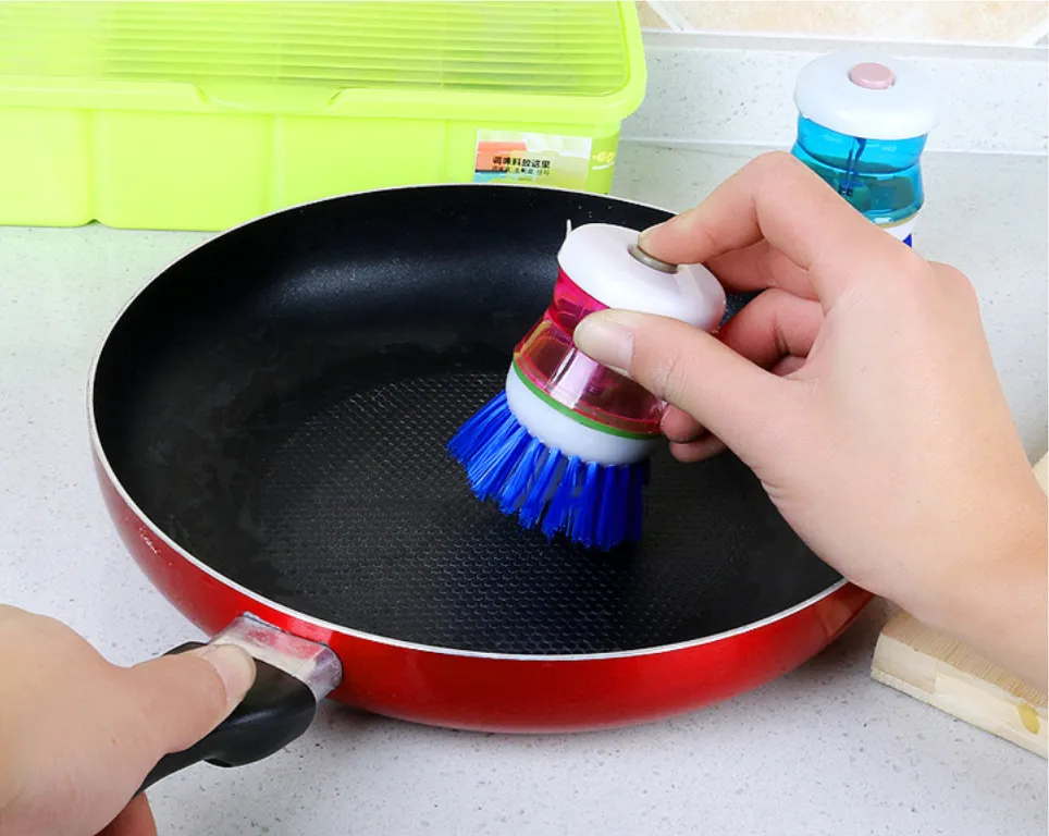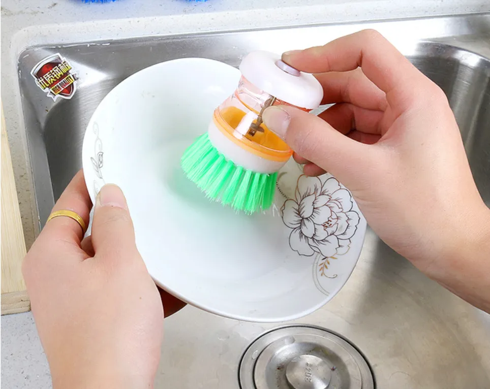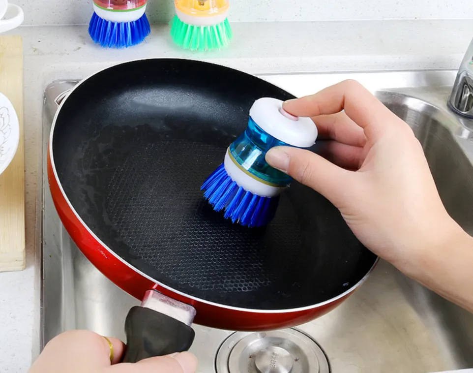 The standout feature of the Soap Dispensing Palm Brush is its built-in soap reservoir. Simply fill the brush with your favorite dish soap, and with a gentle press of your palm, the soap is dispensed directly onto the brush bristles. This eliminates the need for constantly squeezing soap bottles or using excessive amounts of cleaning product.