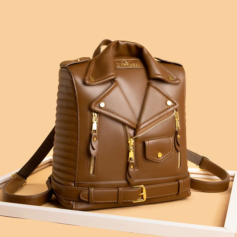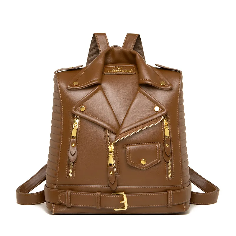 Soft Leather Textured Jacket Trendy Wild Clothes Backpack