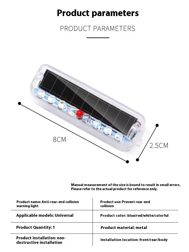The Solar Power Vehicle Anti-Collision Strobe Light is a revolutionary safety device designed to improve the visibility of your vehicle, especially in low-visibility conditions. Whether you're driving in foggy weather, during the night, or on New Zealand’s rural roads, this strobe light ensures that your vehicle stands out, reducing the risk of accidents and collisions.