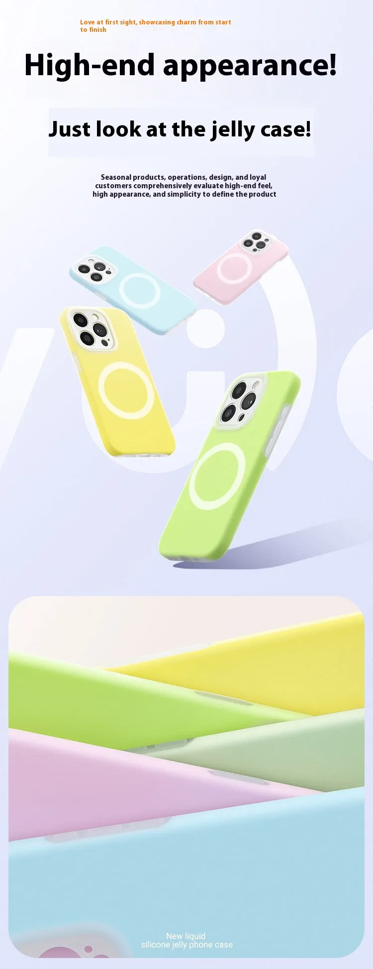 The Solid Color Jelly Magnetic Liquid Silicone Phone Case is the ultimate combination of modern design and reliable protection. Made from premium liquid silicone, this case provides a soft, silky-smooth texture that feels great in your hand while offering superior durability. The jelly-like flexibility ensures a snug fit, making it both stylish and functional for everyday use.