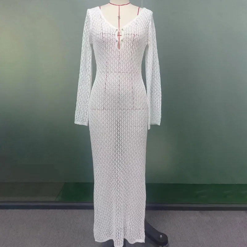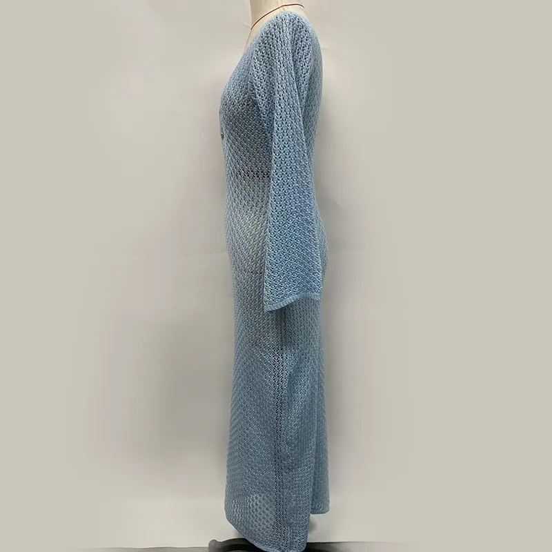 Solid Color Knitted Hollow-out Beach Swimsuit Blouse Sun-proof Women's Skirt