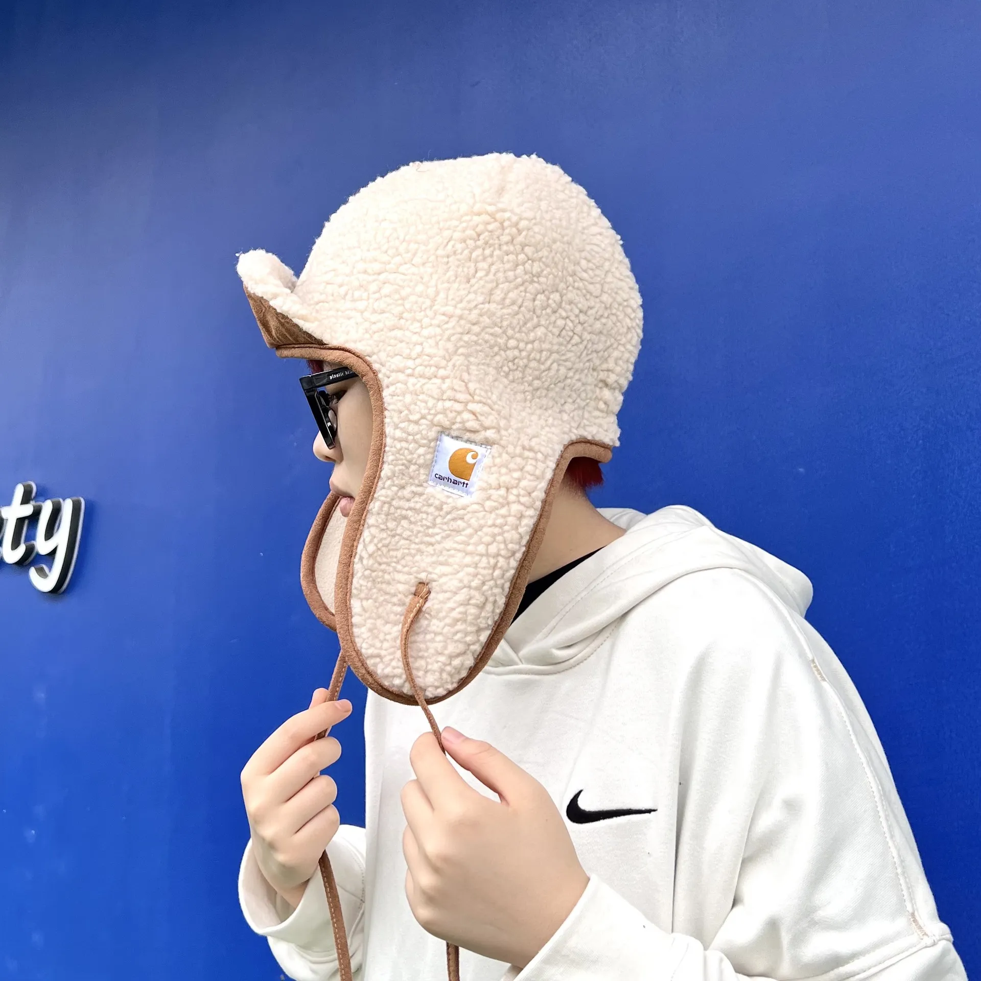Solid Color Lamb Wool Flying Hat