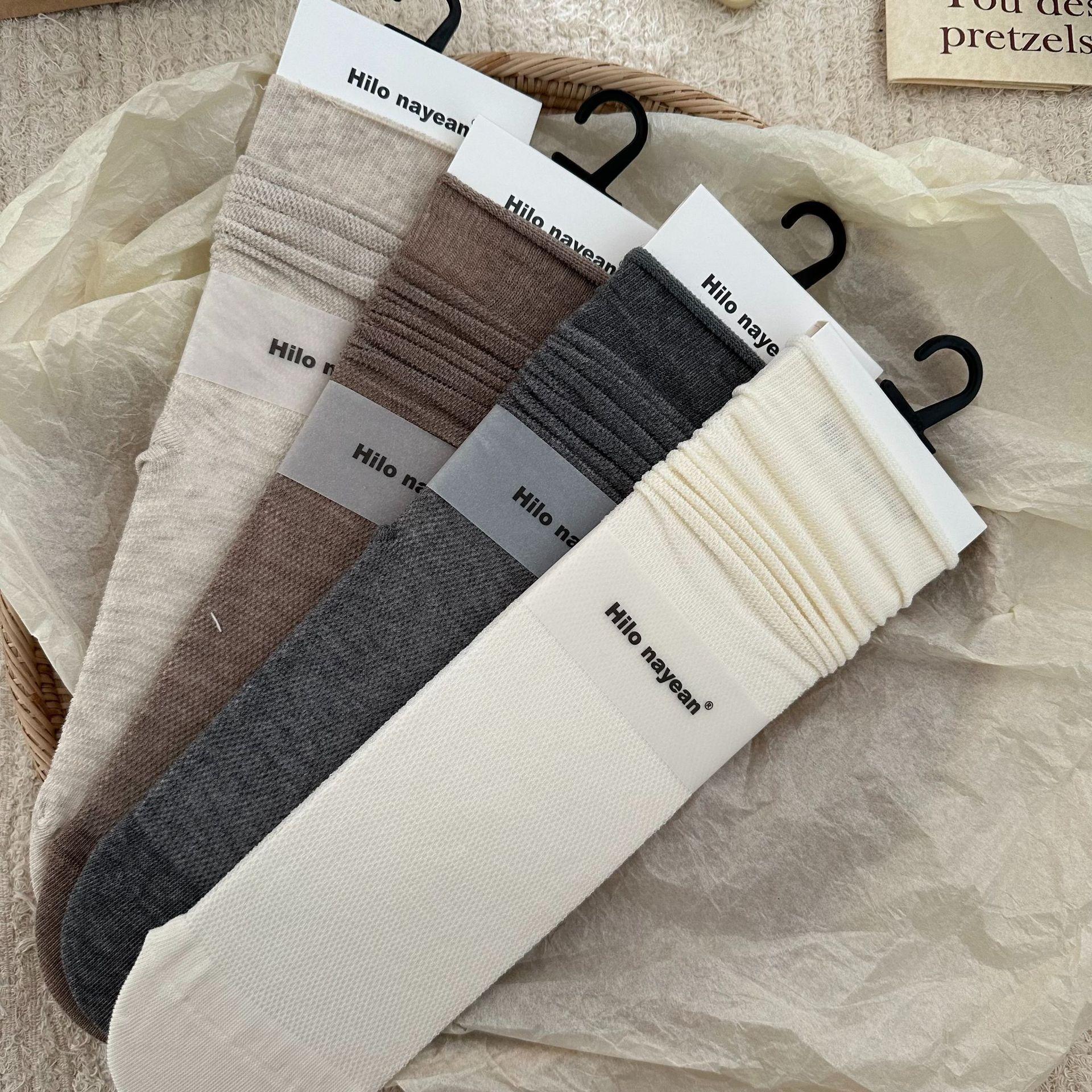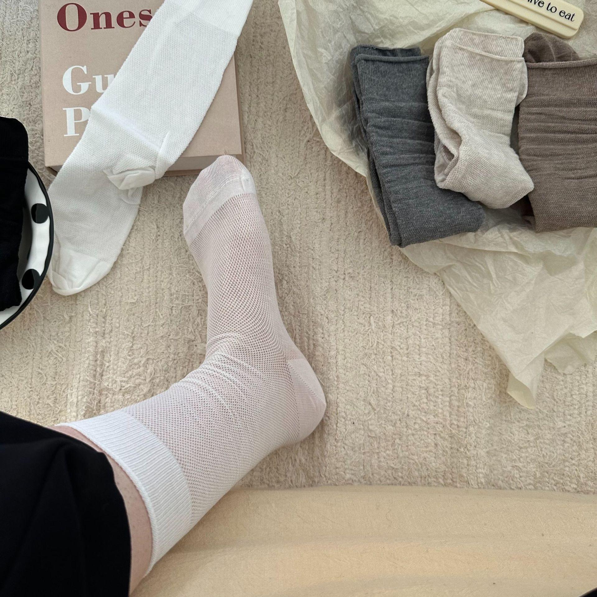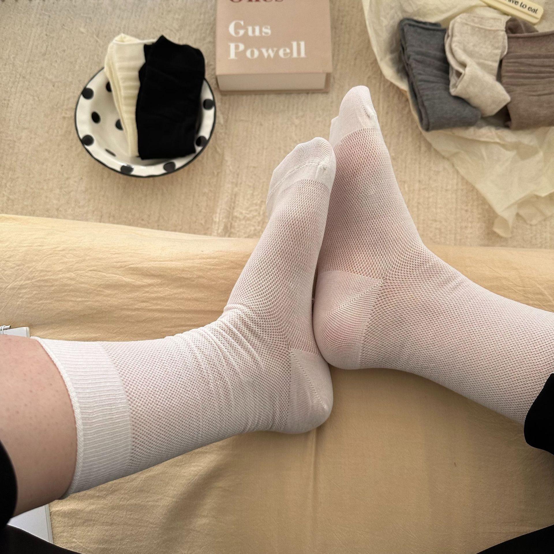 Solid Color Mesh Colorful String Mesh Hollow Out Mid-calf Length Loose Socks