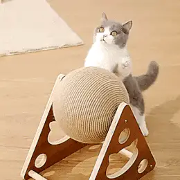 Introducing, the highest quality sisal ball toy ever to be produced. The base is expertly crafted from premium wood that is sturdy enough to endure your cat's constant play time. The spinning ball is made of high quality sisal that has been engineered in-house to ensure a longevity that is unmatched when compared to the standard scratching post.