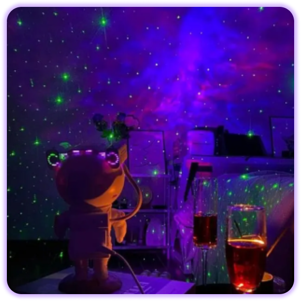 Indulge in cozy relaxation, wrapped in warmth, and surrounded by starry enchantment. Let Spacebuddy turn your space into a captivating cosmic realm, making movie nights with your favorite shows an unforgettable experience.