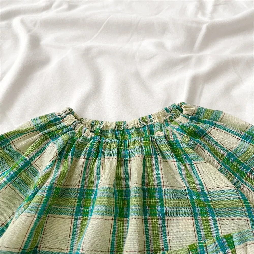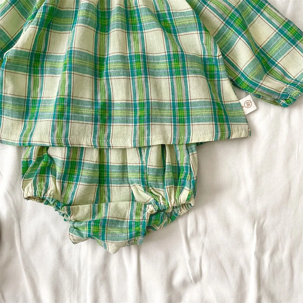 Classic Green Plaid Design: The timeless green plaid pattern adds a touch of sophistication to your baby's wardrobe.