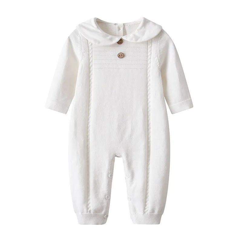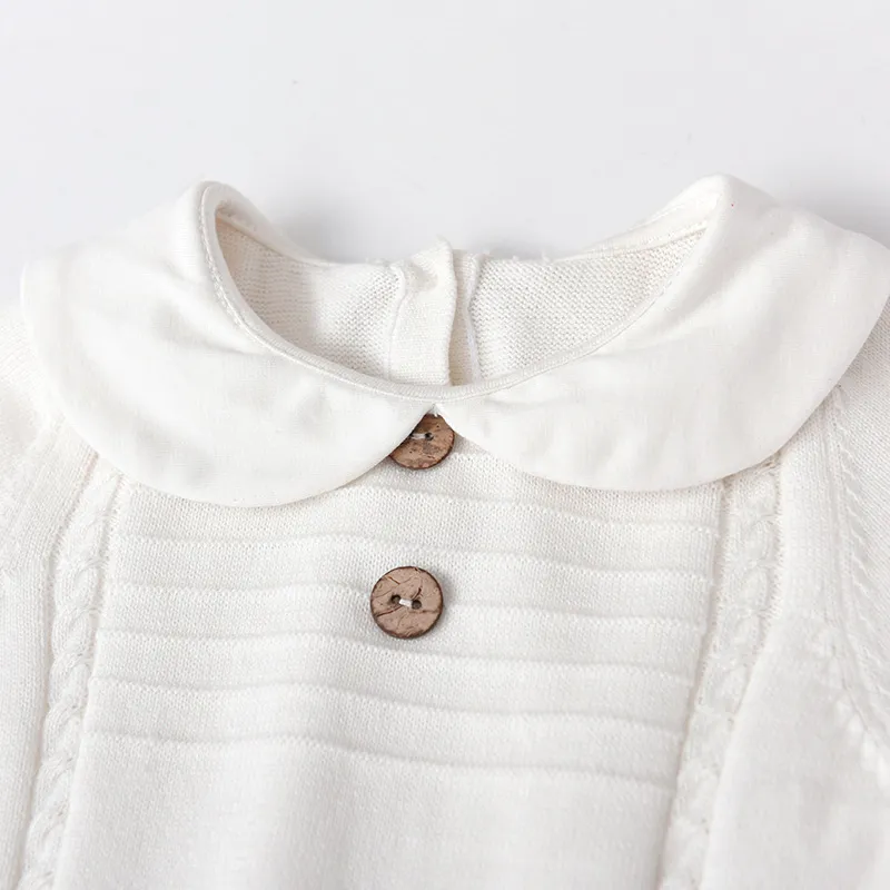 Spring & Autumn Doll Collar Twist Knitted Romper – Cozy, Cute & Classic