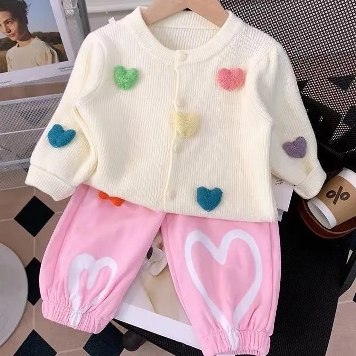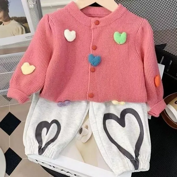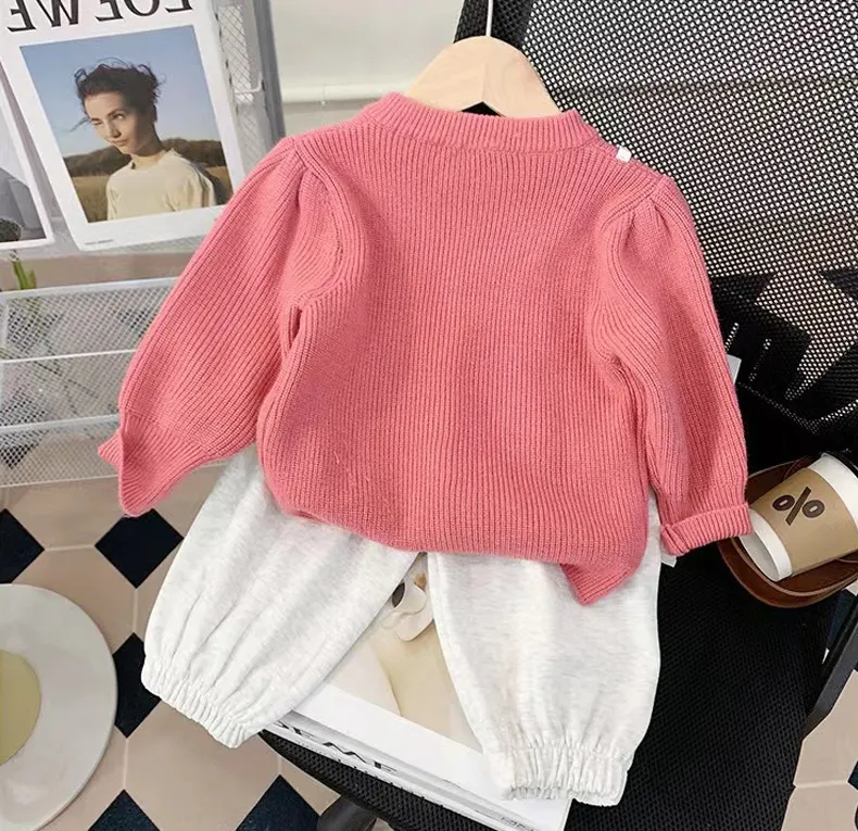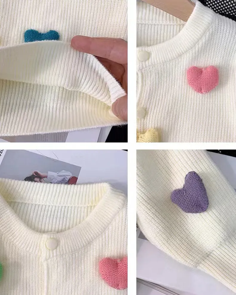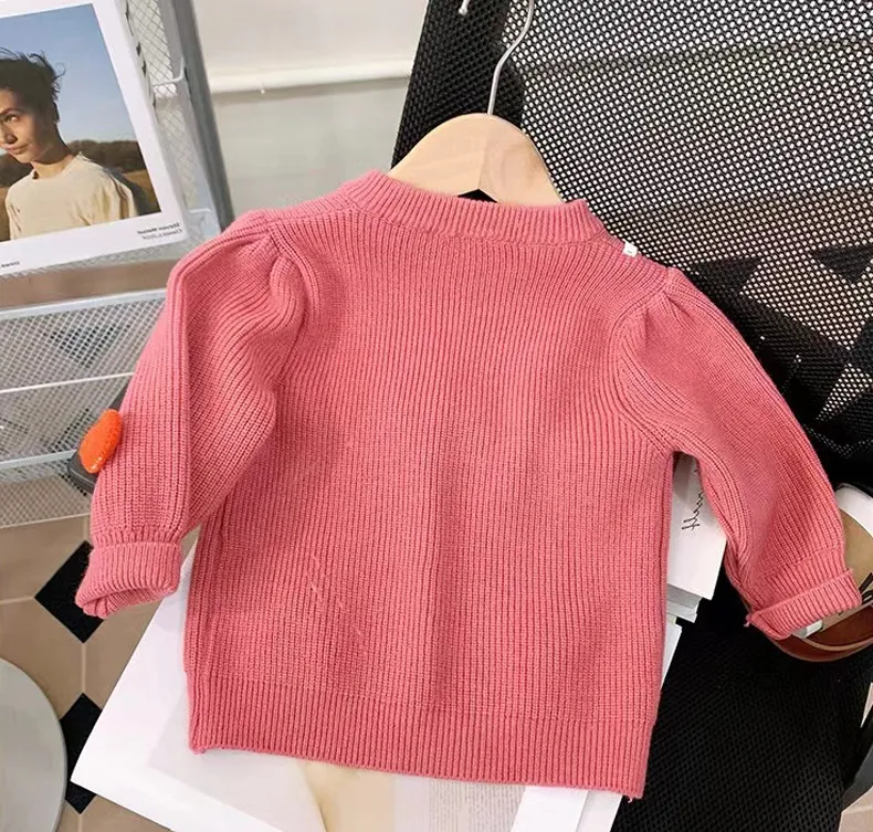 Spring Girls' Three-dimensional Love Puff Sleeve Sweater Coat: Stylish and Cozy for Your Little One