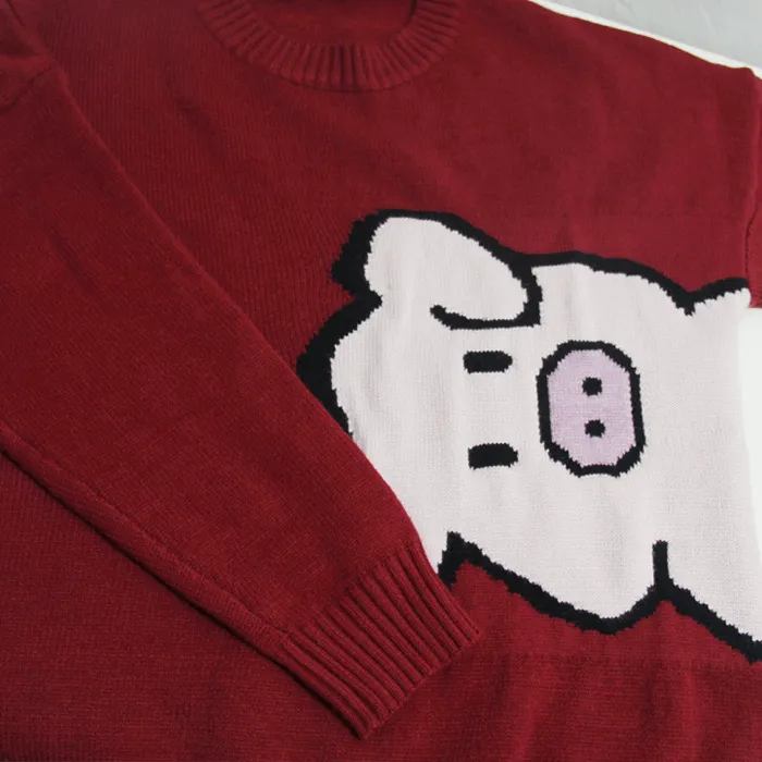 Crafted from soft, comfortable materials, the Red Pig Sweater is not only stylish but also perfect for the cooler days of early spring. Its bold red color is a traditional symbol of luck and vitality, making it the ideal garment to usher in the new season and the new year. With its unique pig motif and cozy feel, this sweater is perfect for anyone looking to celebrate the Spring New Year in a fun and meaningful way.