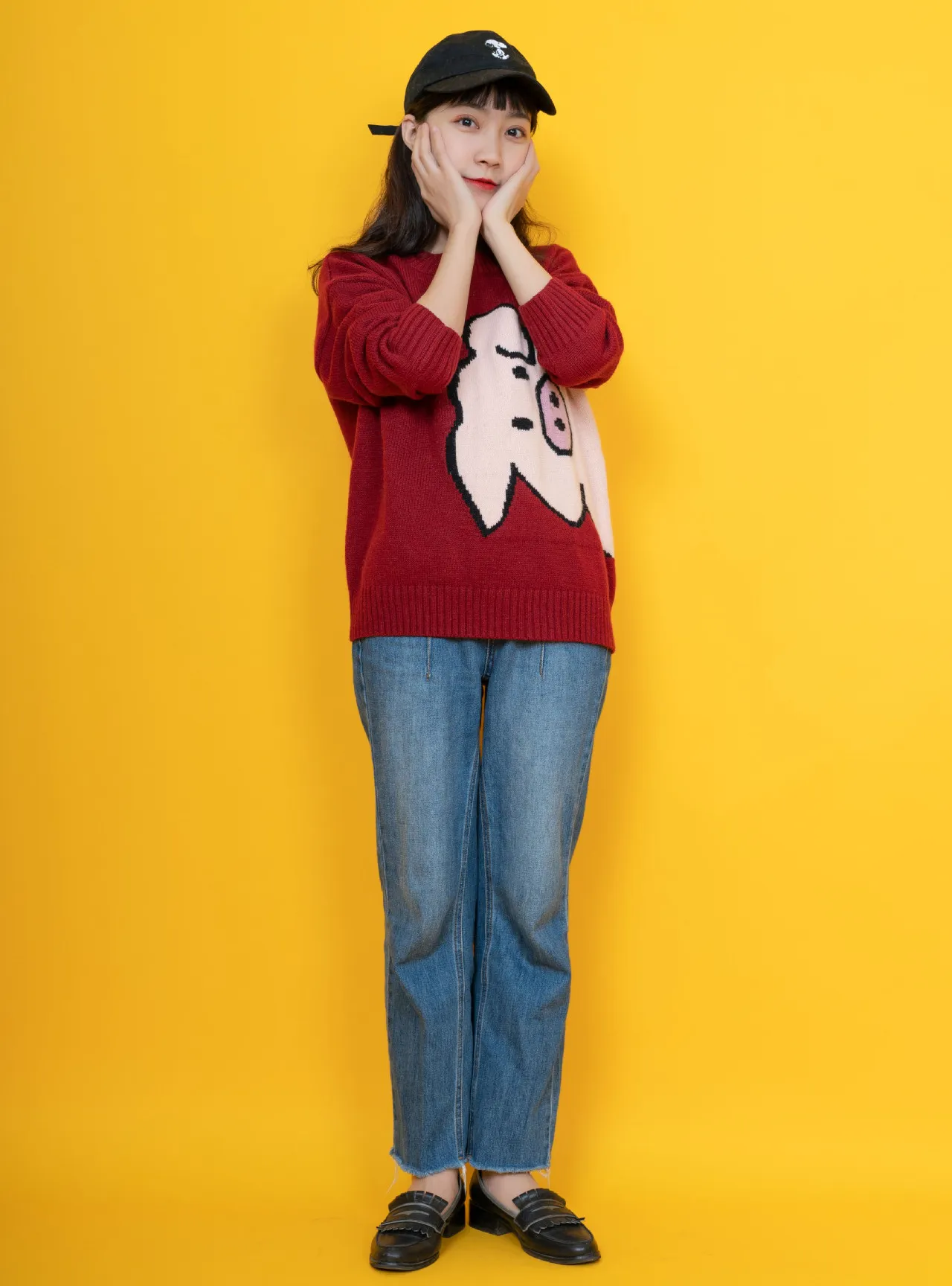 The Red Pig Sweater features an adorable pig motif that’s both playful and meaningful. In many cultures, the pig is a symbol of good fortune, prosperity, and happiness, making it the perfect design for the new year. The cheerful pig graphic adds a touch of fun to your spring wardrobe, making it a standout piece for your seasonal celebrations.