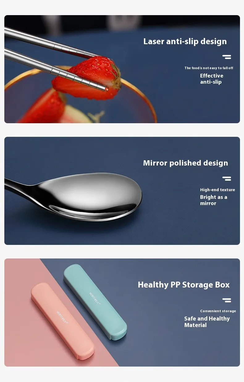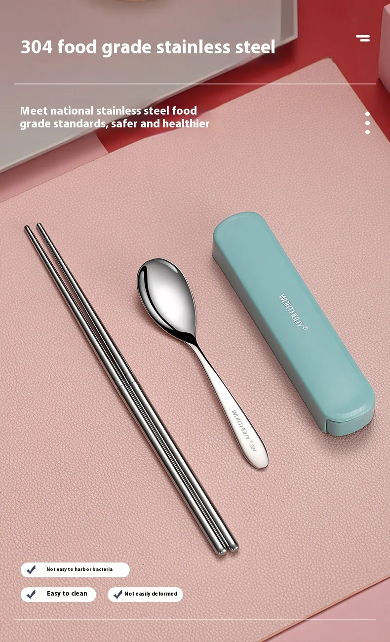 Stainless Steel Chopsticks Spoon Kit Portable Tableware Three-piece Set Student Travel Cutlery Box