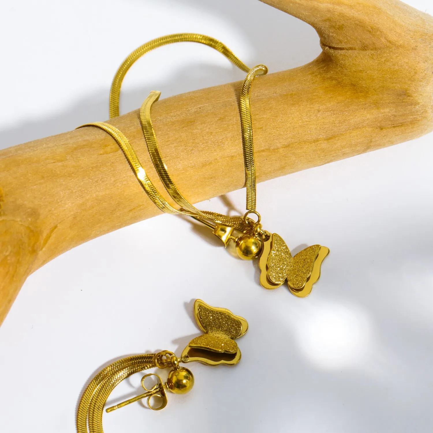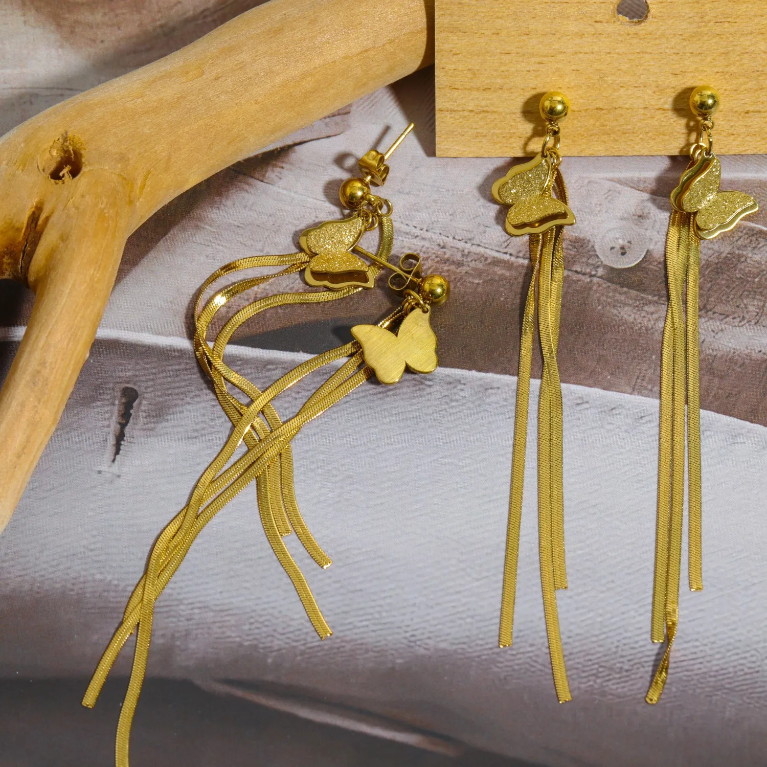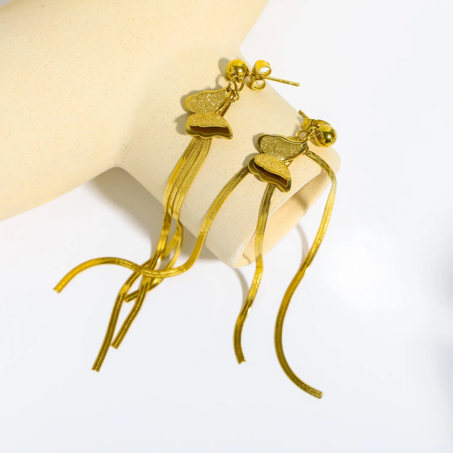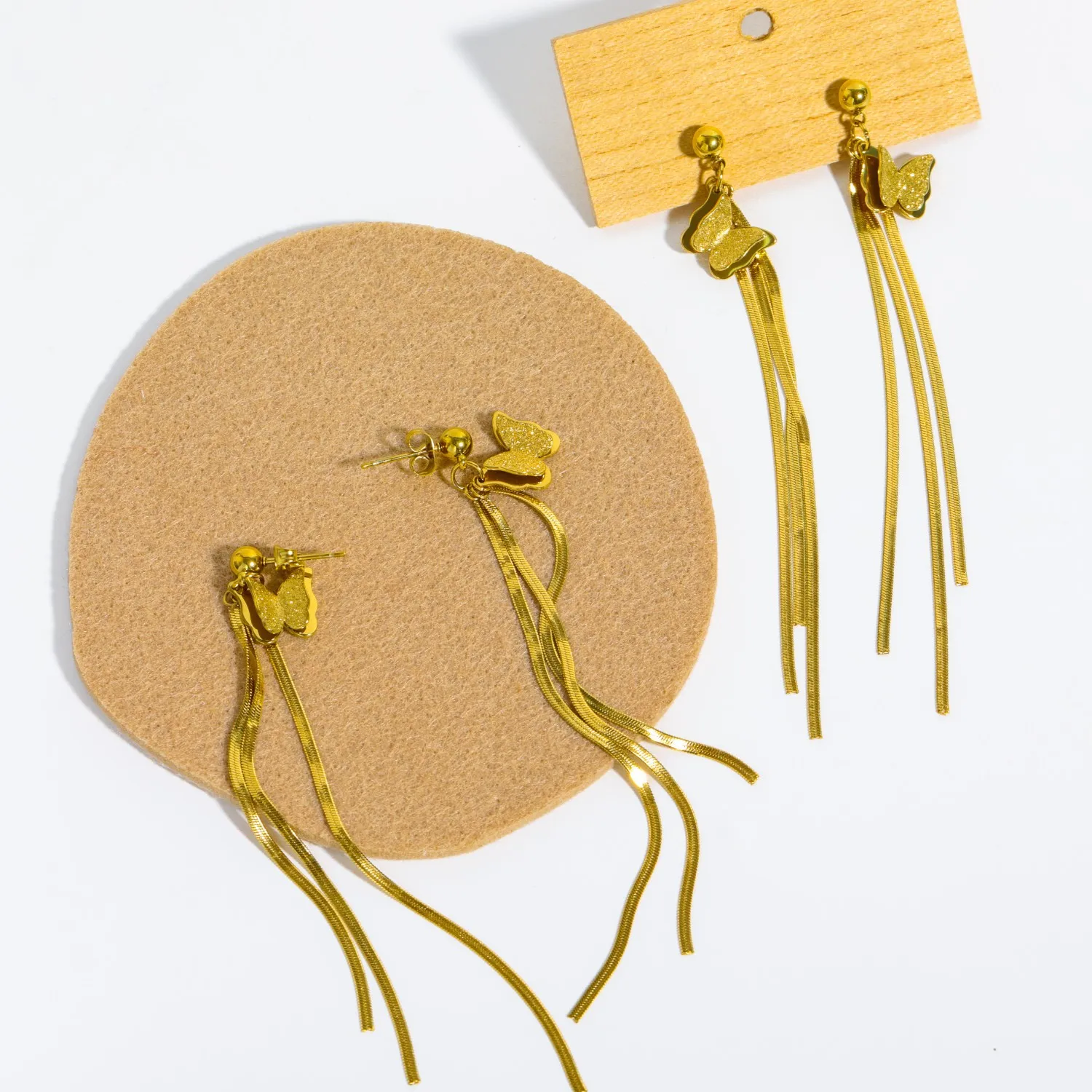 The Stainless Steel European and American Entry Lux Butterfly Earrings Wings Mori Earrings Plated 18K Gold Color Protection are the epitome of luxury and modern design. Combining the ethereal beauty of butterfly wings with the strength of stainless steel, these earrings make a statement with their elegant form and delicate craftsmanship. Featuring 18K gold plating and color protection technology, these earrings are designed to maintain their shine and radiance over time, ensuring they stay beautiful and durable for years to come.With their blend of European and American influences, these earrings are both fashionable and symbolic, offering a versatile accessory that can be worn for any occasion. Whether you're looking to add a sophisticated touch to your outfit or give a special gift, these earrings will add a timeless, luxurious appeal to your collection.