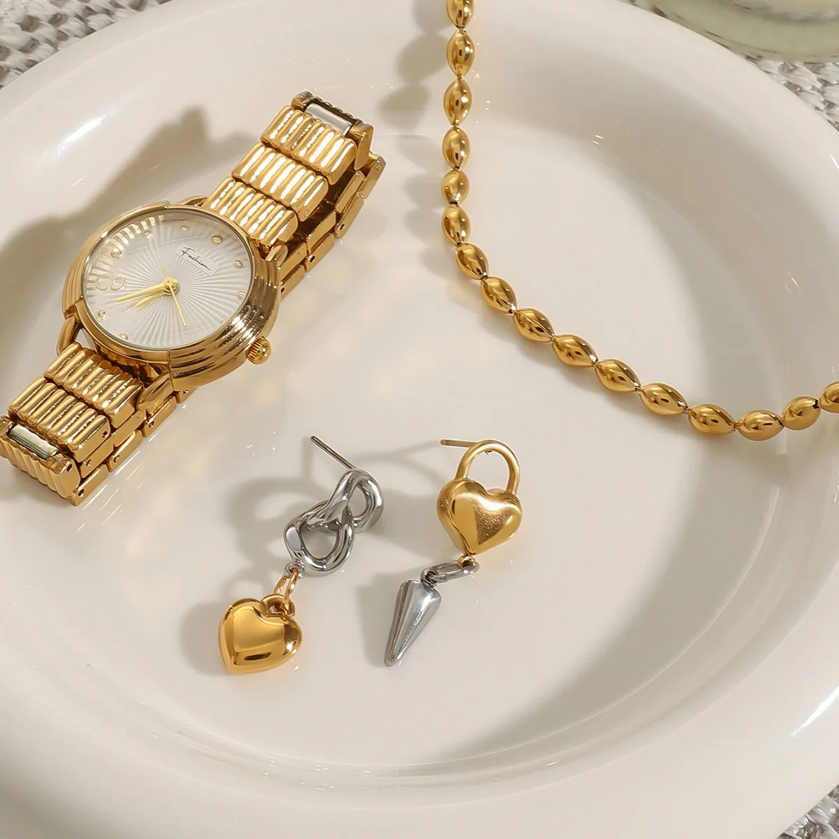 Stainless Steel Gold And Silver Color Matching Heart Cone Chain Love Heart Earrings